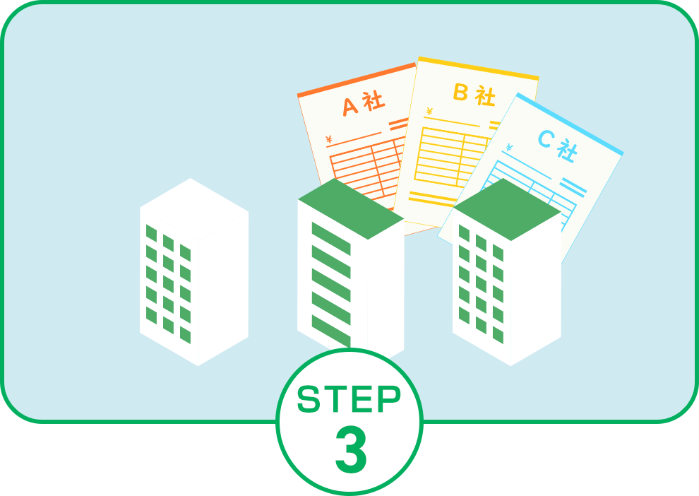 お申し込みから10営業日以内に、複数社の比較見積もりをお届けします。専門スタッフが内容を丁寧にご説明いたしますので、安心してご利用いただけます。